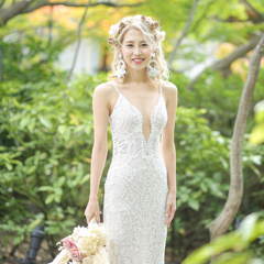 もう文句なしに美しいドレスで、マーメイドシルエットと刺繍に一目惚れでした。ガリアのドレスを着るのは夢でしたし、ガーデン挙式にもマッチすると思いこのドレスに決めました。