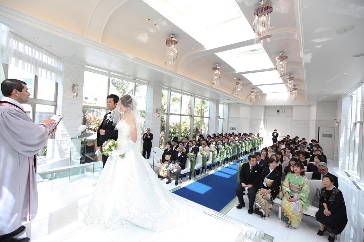 自然光が差し込むチャペルで青の絨毯に変更もできるので、ウエディングドレスが映えてとても素敵な挙式ができました。