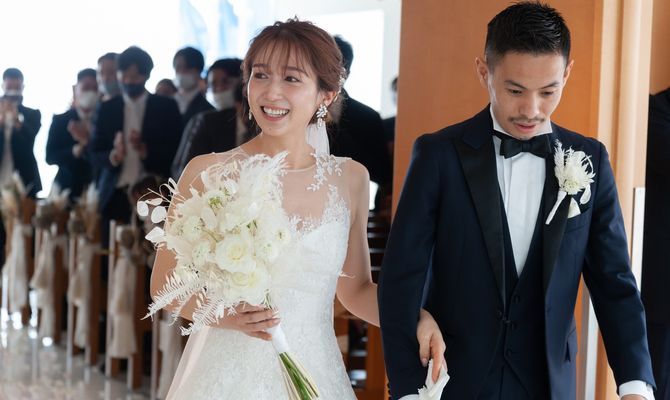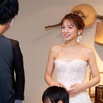 家族愛と感謝をテーマにしました。ファミリー婚だったので、息子も参加できるような工夫や、両親への感謝を新郎新婦共に贈れるようにメモリアルプレイを取り入れました。コロナ禍の中参列してくださったゲストの方々にも、久しぶりに友人同士で食事が楽しめるようにと、余興は最低限にして、それぞれの会話を楽しんで頂く時間もとれるように意識しました。