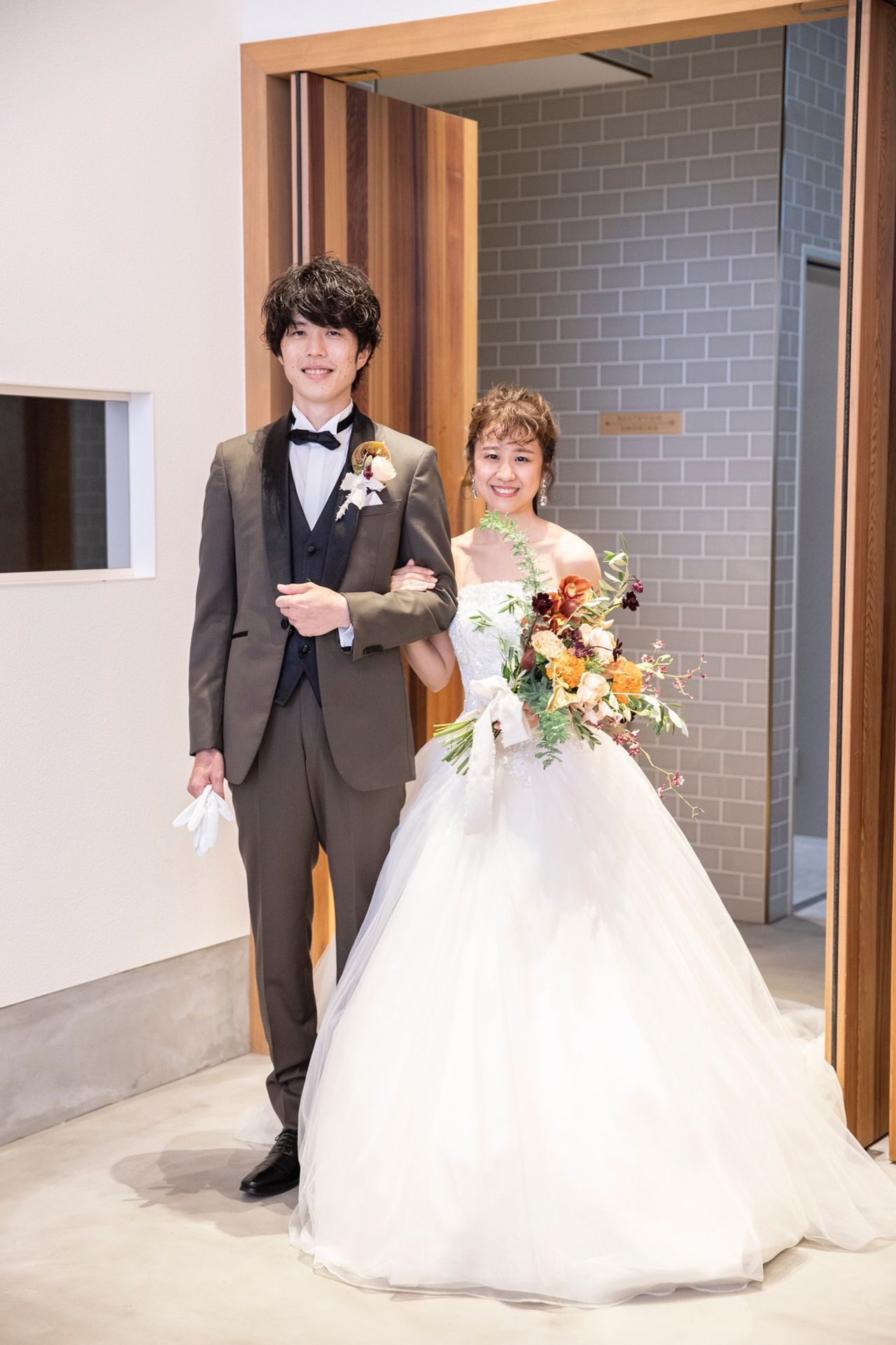 ブーケは秋っぽいカラーの中にグリーンを足してもらい、ぴょんぴょんと動きのあるものを作っていただきました。想像以上に可愛くてにやにやしました。