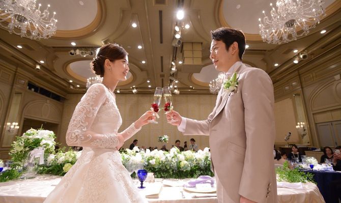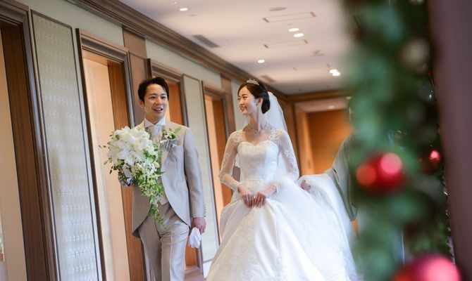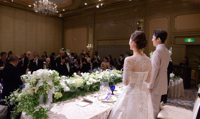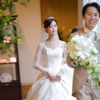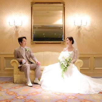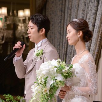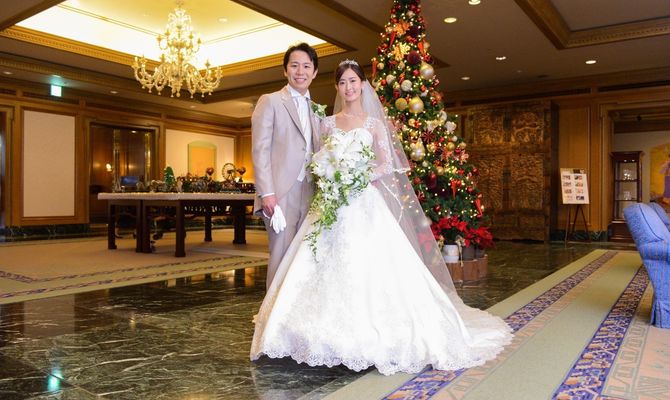 テーマは『正統派ウェディング』です。これから先、何年経って振り返っても"挙げて良かった"と思えるような、流行に囚われない結婚式を意識しました。ホテル椿山荘東京は、二人が出会った特別な場所なので“結婚式はここで挙げたい”という想いが以前からありました。また、ホテル棟には美しい大理石階段の写真スポットがあります。そこでウェディングドレス姿で撮影をしたいと思っていたので、素敵な写真を残すことができて大満足です!