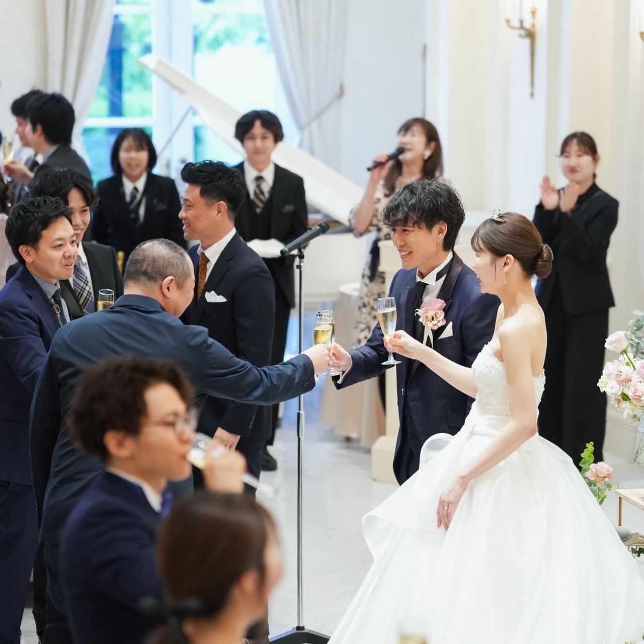 幼い頃からの友達やお世話になった職場の方など、大切な方々が集まる場なので、サプライズリングやドレスのカラー当て、デザートビュッフェなど"ゲスト参加型の演出"を取り入れました。