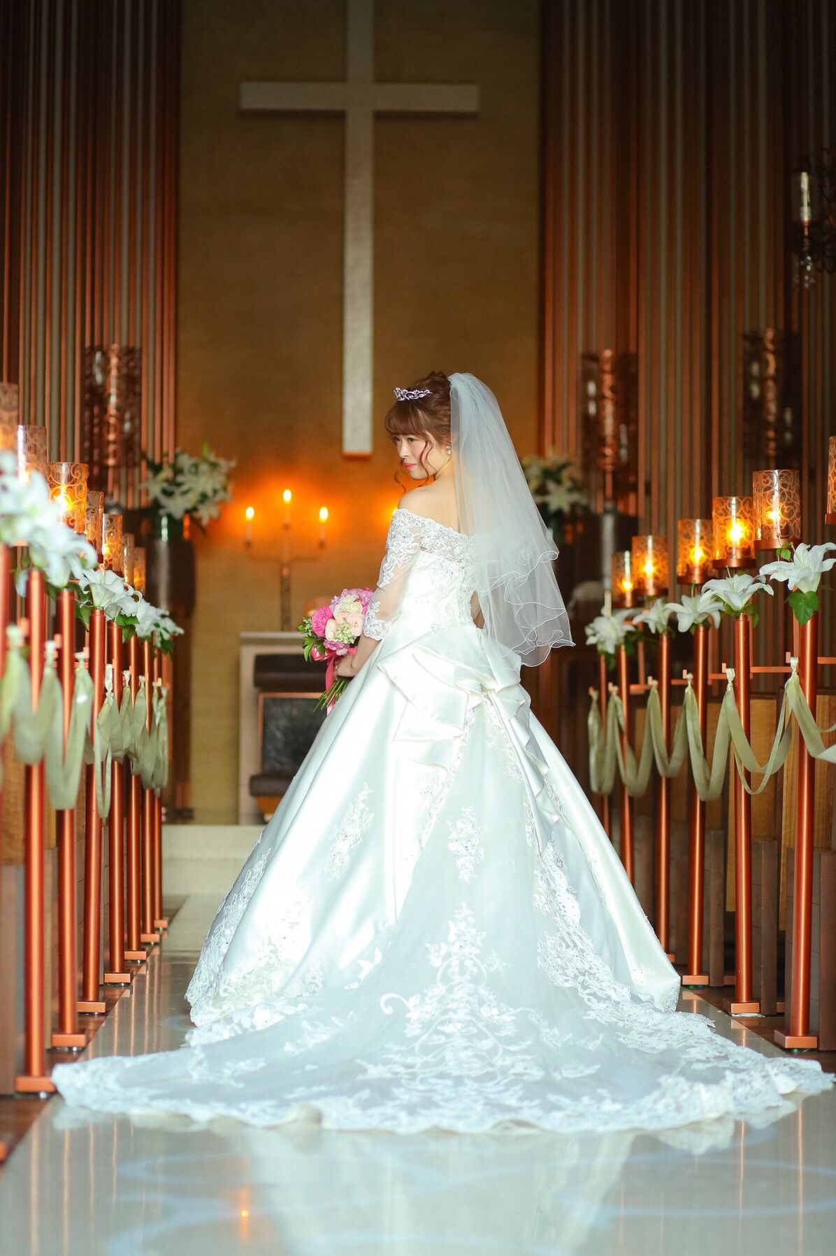 ・会場内の照明は暗く、バージンロードを歩く際はそこだけ照らされるので、主役感を味わえます!