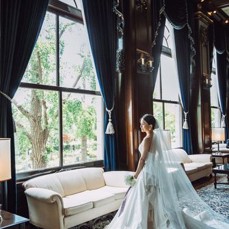 芸術学科卒の夫婦で、細かいところまで気になる性分のため、自分たちが楽しむためには、会場をはじめ、会場と衣装の一体感など、全てにおいて自分が納得し、好きなものを集めました。