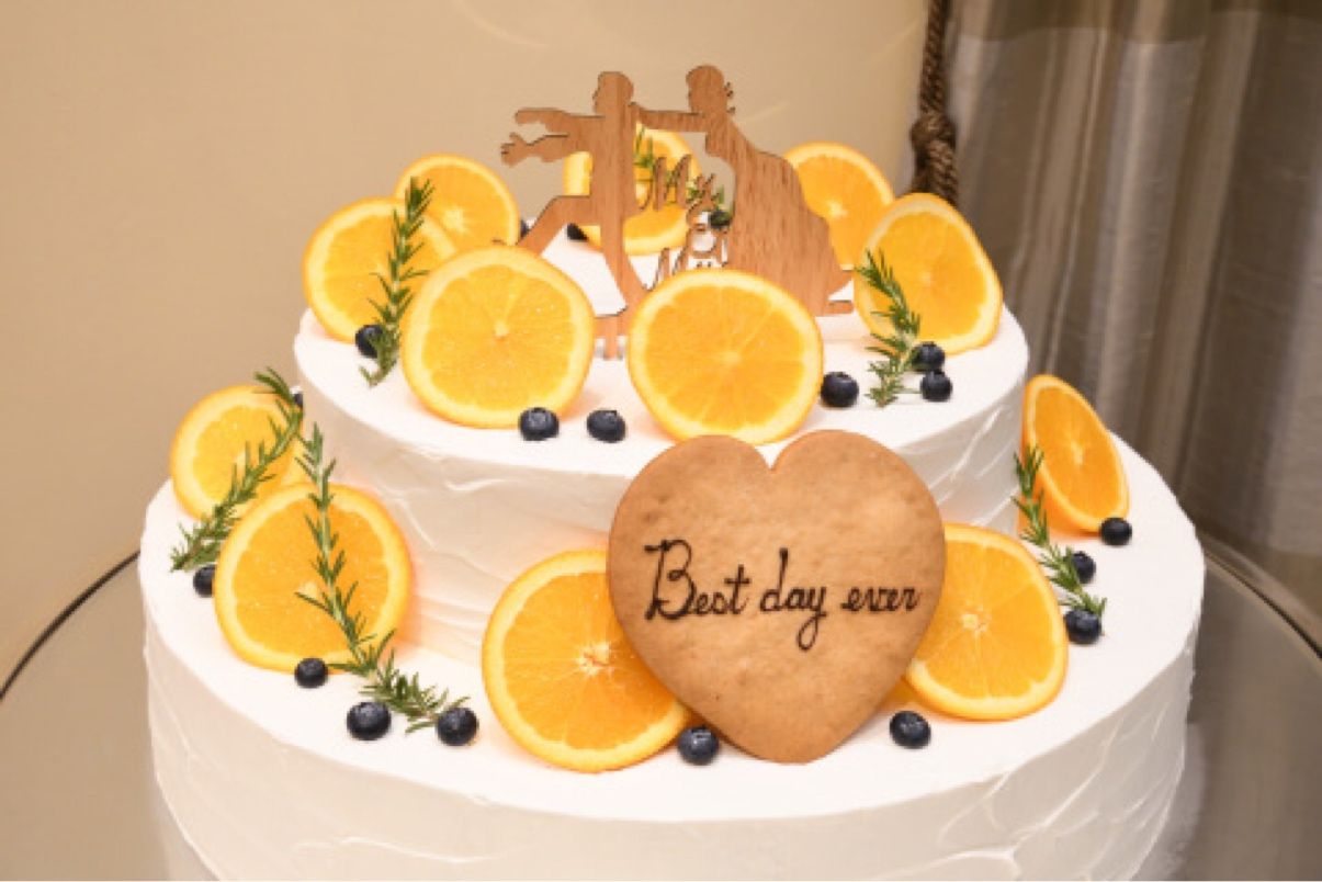 ナチュラルでかわいいケーキにしたかったのでオレンジとブルーベリー、ローズマリーを使った2段のオリジナルケーキにしました。