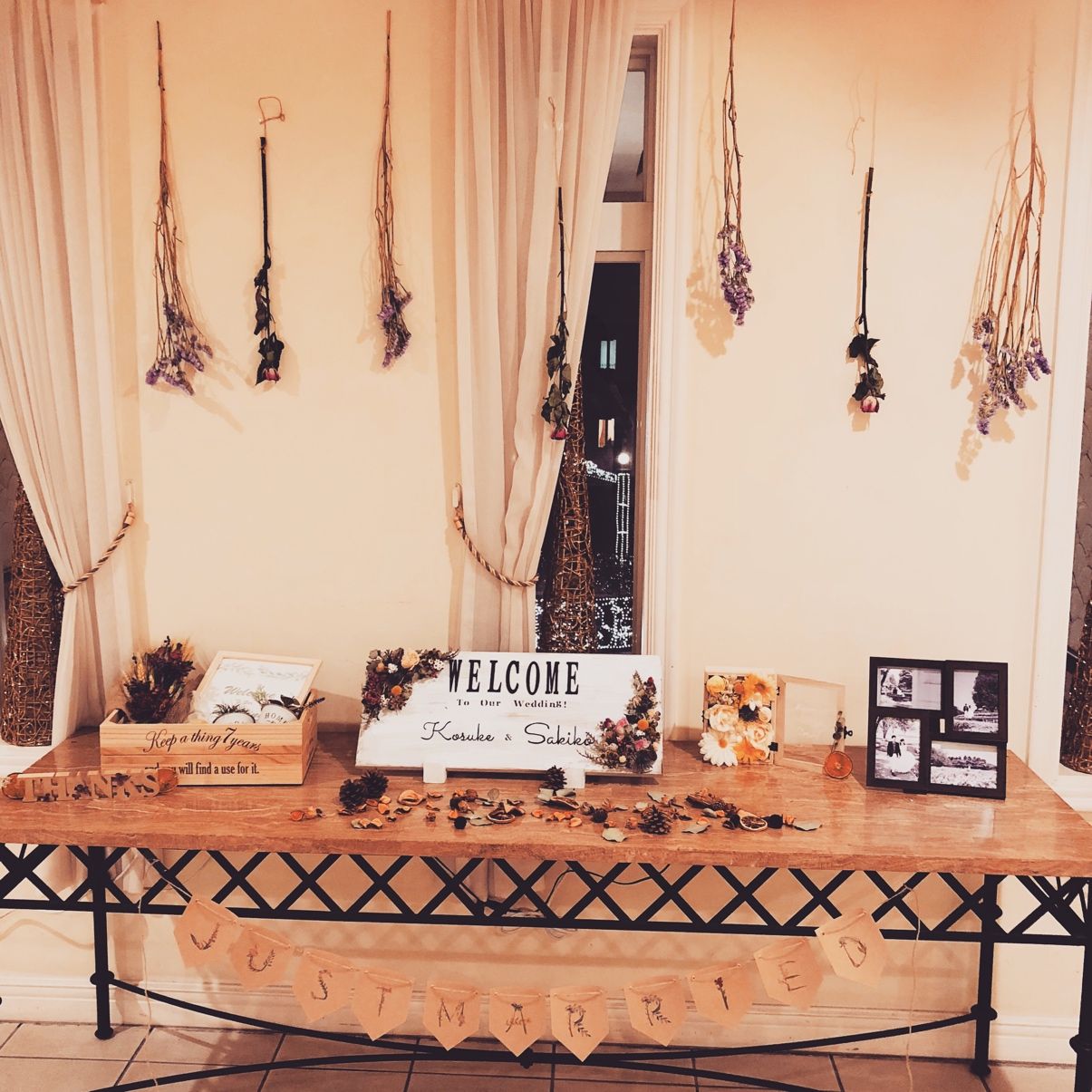 自分でもドライフラワーを使ったテーブルナンバーや、フラワーモチーフのペーパーアイテムを作って飾りました。