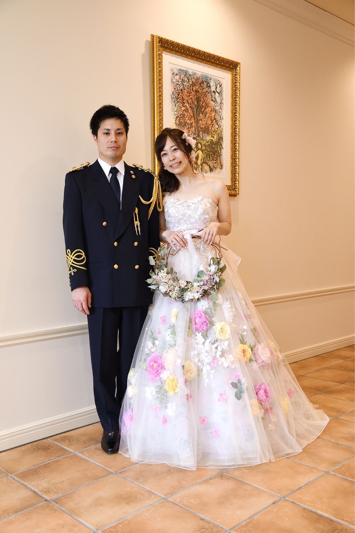 カラフルな造花がたくさんついていて珍しくて春婚にぴったりなとてもかわいいデザインです♡派手になりすぎないくすんだ色合いもとてもかわいいです。