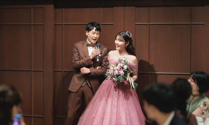 私たちの式のテーマは“ふたりらしさ”です。結婚式という特別感はありつつも、着飾りすぎずゲストに「ふたりらしい」と思ってもらえる式になればいいなと思い準備しました。挙式・披露宴の内容もふたりで話し合い、形式ばらずにお互いのやりたいことを詰め込みました💐