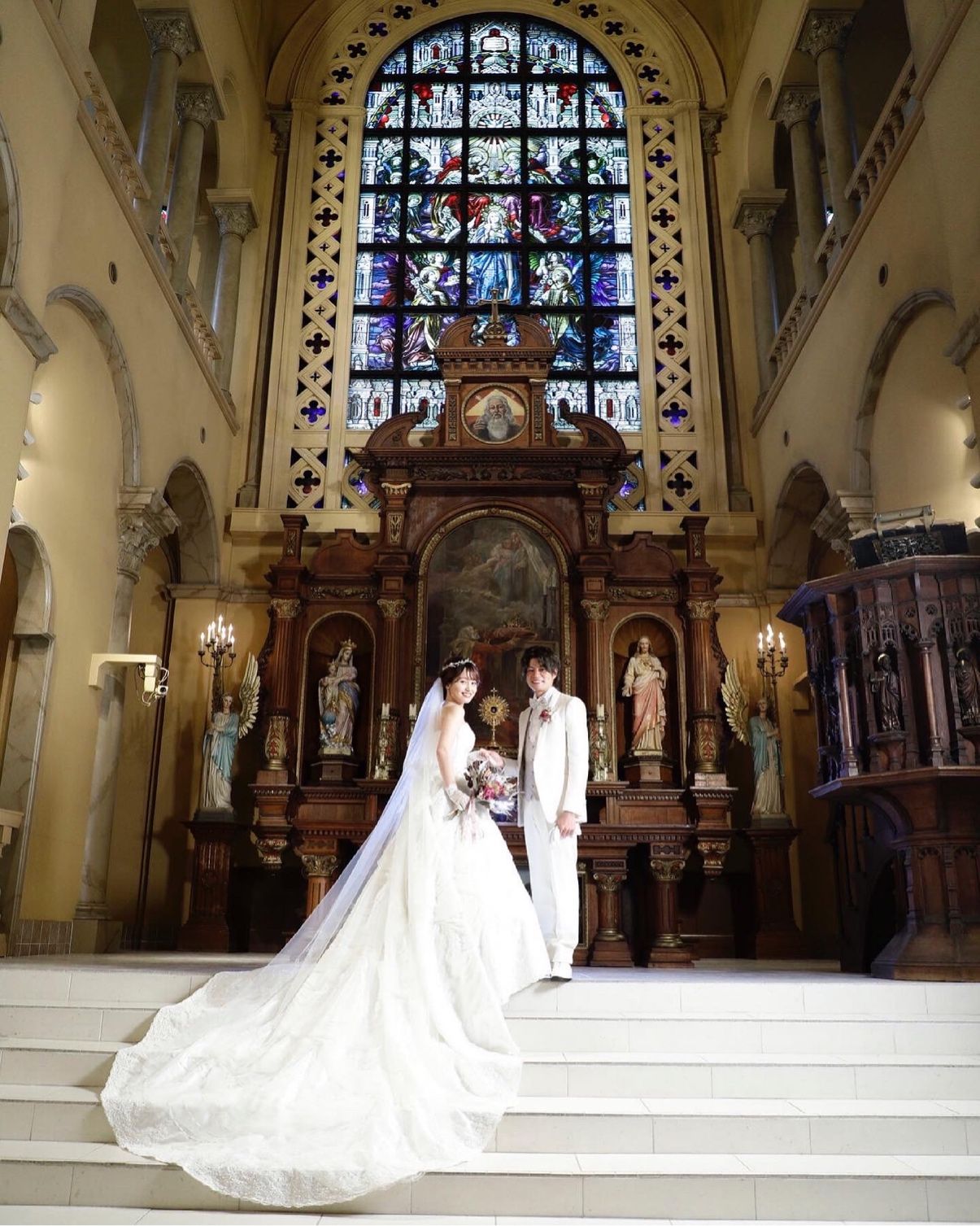 まずイタリアから直輸入した、エレガントで光輝く大聖堂での挙式が海外を思わせるほど素敵で写真映えもしました。讃美歌や演奏隊もおり本格的な映画のようなシーンを演出できましたよ!