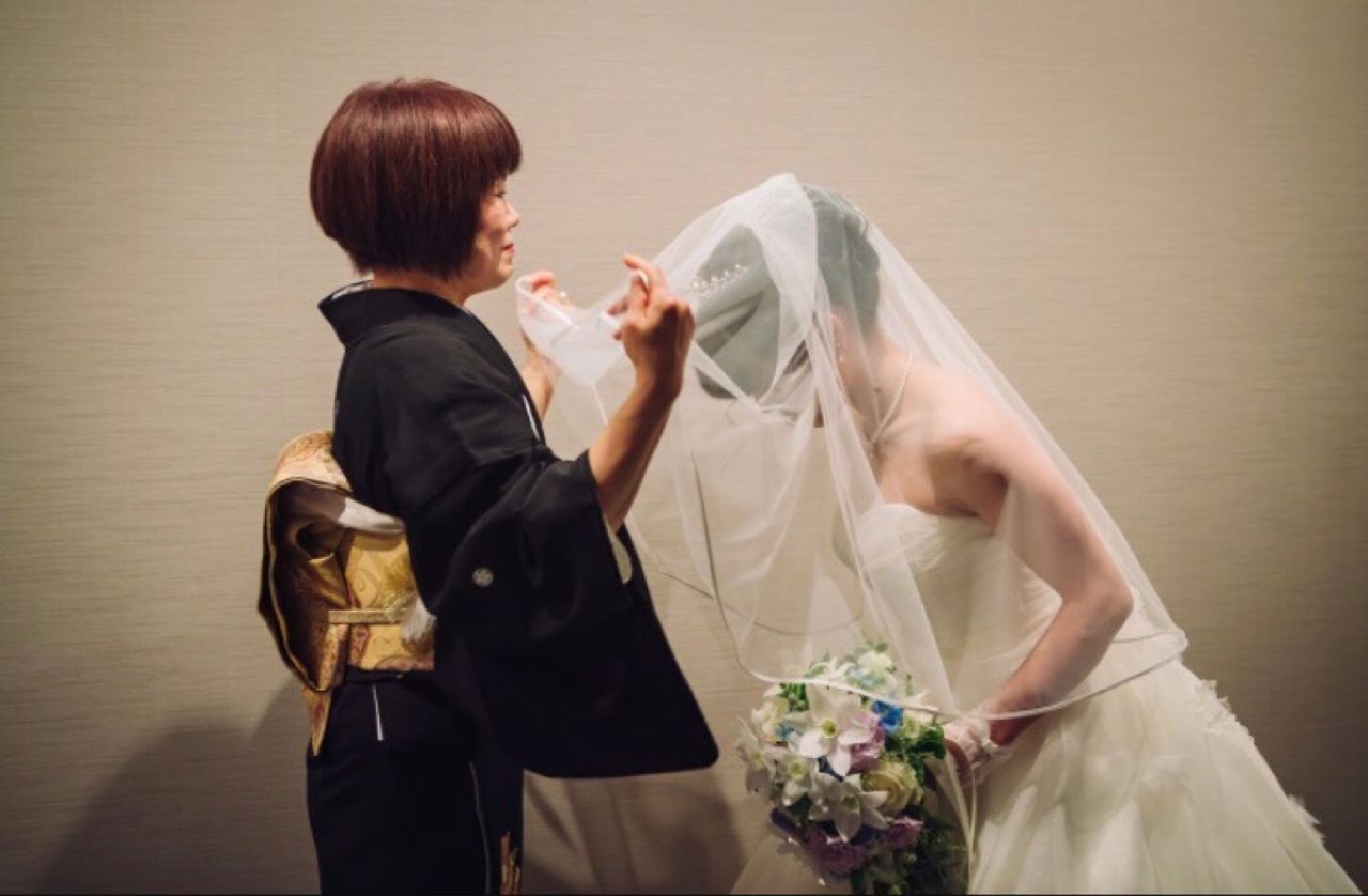 ベールダウンの時にすでに感極まって泣いてしまい、誓いのキスまでずっと泣いていました。