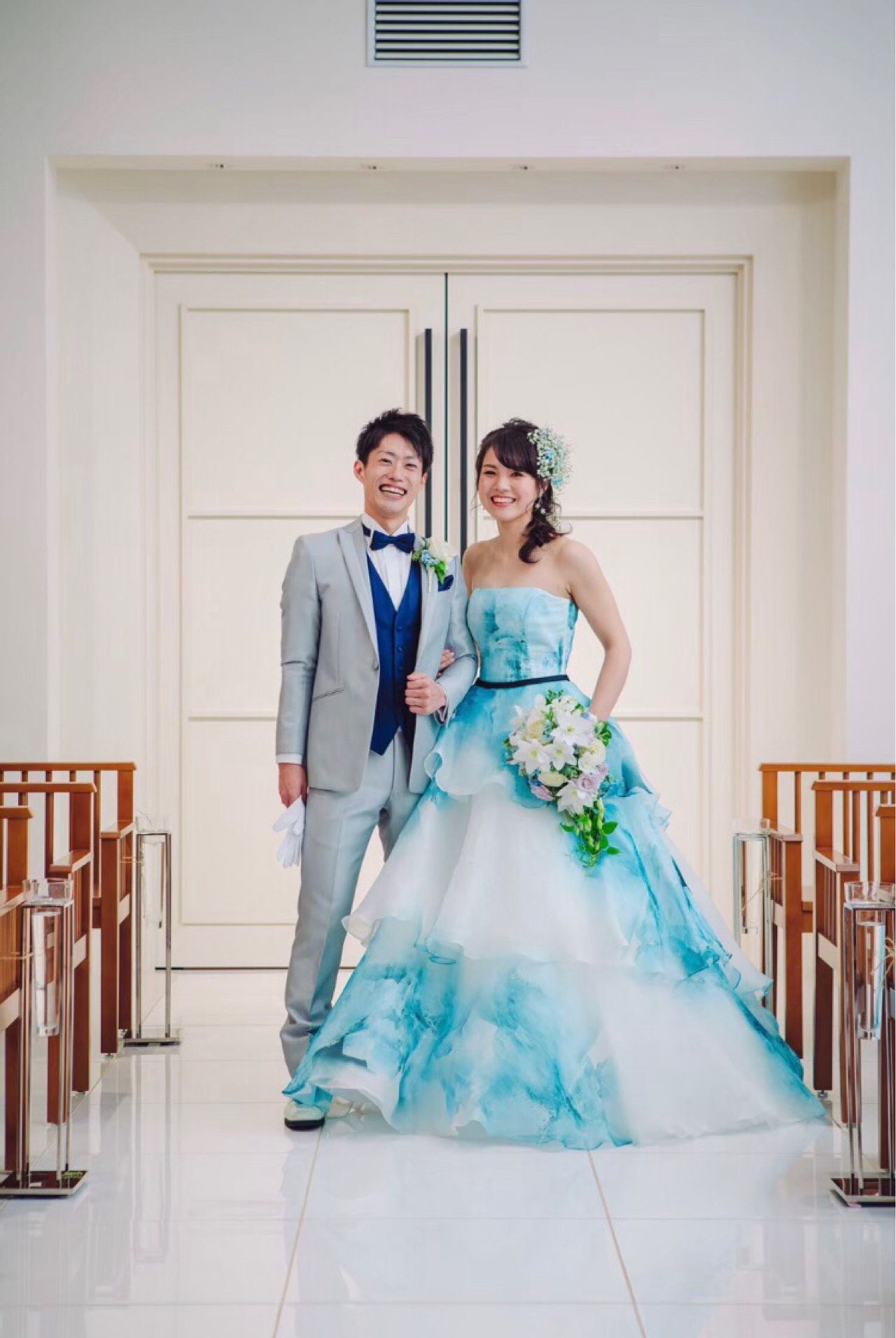 式のイメージにピッタリの白と水色で、質感も上品で目を引くデザインでした。