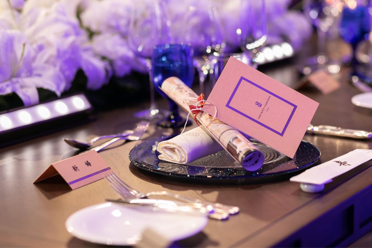 もともとホテルでヨーロッパの晩餐会のような結婚式がしたいと思っていました。ただ、コロナ禍の結婚式開催で泣く泣く欠席された方も多数おられたため、なるべく見た目の派手さは抑えるようにしました。