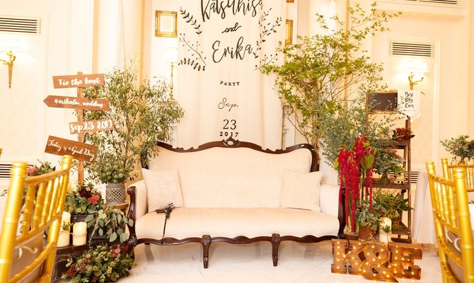 ナチュラルな会場がテーマでした。ソファ席にすることで、ゲストと新郎新婦の距離感を縮めたり、ソファに一緒に座ってお話しができました。