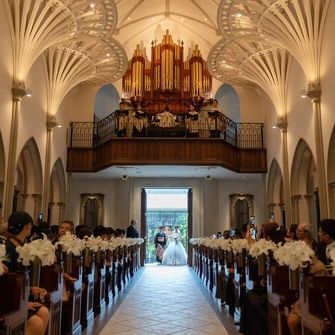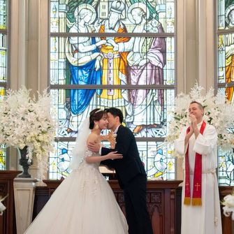 ストリングスホテル名古屋を選んだ決め手は、美しくて存在感抜群の大聖堂とガーデン付きの披露宴会場です。