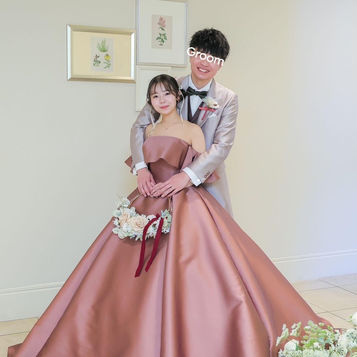 元々ピンクが大好きでしたが、大人かわいいを目指していたところ、こちらのダスティピンクの色味と生地がサテンで可愛くなりすぎないドレスを発見し、即決しました!