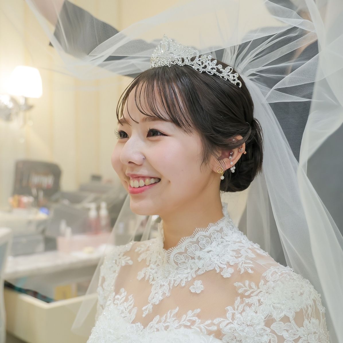 挙式はベールであまり見えないため、ヘッドアクセサリーはつけませんでした。