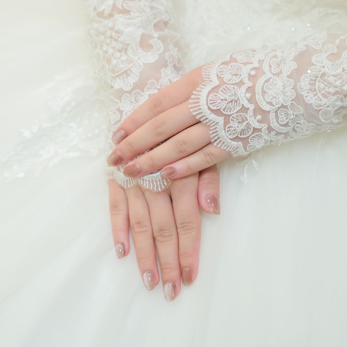 前撮りの時にも母が作成してくれたネイルチップを着用したため、結婚式でもカラードレスに合う色のネイルチップを作成してもらっています!