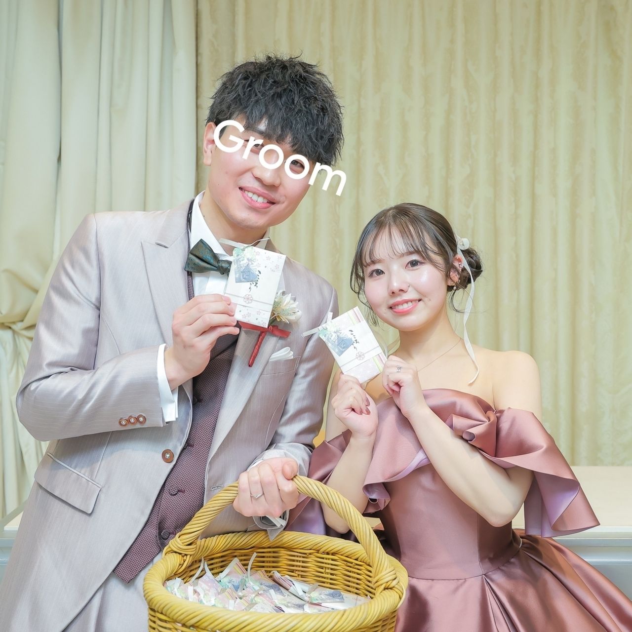 メイクは多幸感増し増しがいいと伝え、チークやアイシャドウの色味、ラメを足してもらうようにしました!こちらも相談して決めています!
