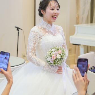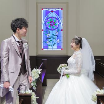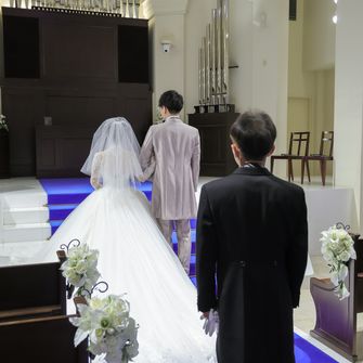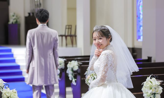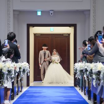 アニヴェルセル 立川は青いバージンロードがとても綺麗で私のしたい厳かなイメージをもてたこと、自作したものなどの持ち込みが自由なこと、また夫婦共に実家や祖父母の家から近く、バリアフリーでエレベーターが設置してあり、車椅子での移動が可能のため、足の悪い祖母たちにも気兼ねなく来てもらえると思い決定しました!