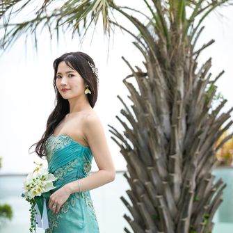 夏の爽やかさと開放感を大切にしました。チャペルも披露宴会場もとても天井が高いため、さらに広く感じます。そしてテラス側は一面ガラス張りとなっているため、自然光によって会場内がとても明るくなるところも気に入りました。また全体的にブルーやホワイトを基調としたことで清涼感や上品さが出せたと思います。