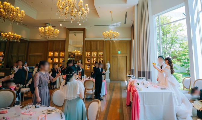 外観がお城のようで、ステンドグラスが美しい大聖堂。そして、自然光が降り注ぐ白亜の邸宅の披露宴会場がお姫様のような素敵な雰囲気で、私たちのテーマにぴったりだと思い、ストリングスホテル名古屋に決めました♡