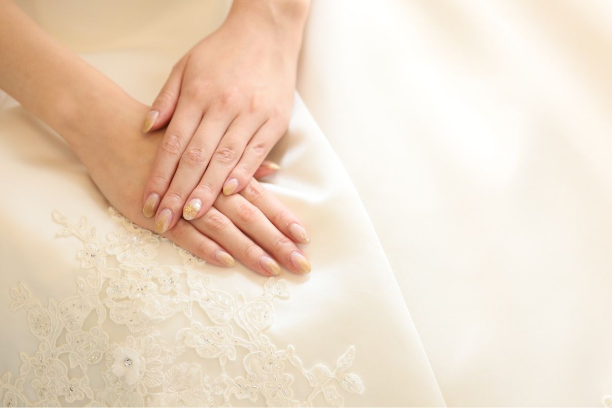 ゴールドと金箔のニュアンスネイルでナチュラルに。