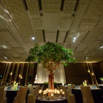 星空をイメージして、たくさんキャンドルを置いたり、ネイビーのグリッタードレスを選びました!