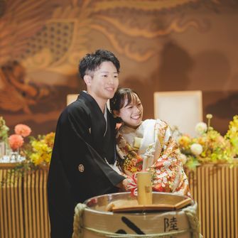 『ゲスト皆様が楽しめるような結婚式』がコンセプトでした。鏡開きやビンゴ大会、ケーキ入刀、ファーストバイトなど、ゲストが最初から最後まで楽しめるようにたくさんの演出を取り入れています。八芳園は、結婚式だけではなくその後のライフイベントでも利用することができ、その先の人生を共に歩むいつでも帰って来れる場所というところに惹かれました。また白鳳館に入った瞬間、圧倒され、ここで結婚式をしたい!と思ったことも決め手になっています。
