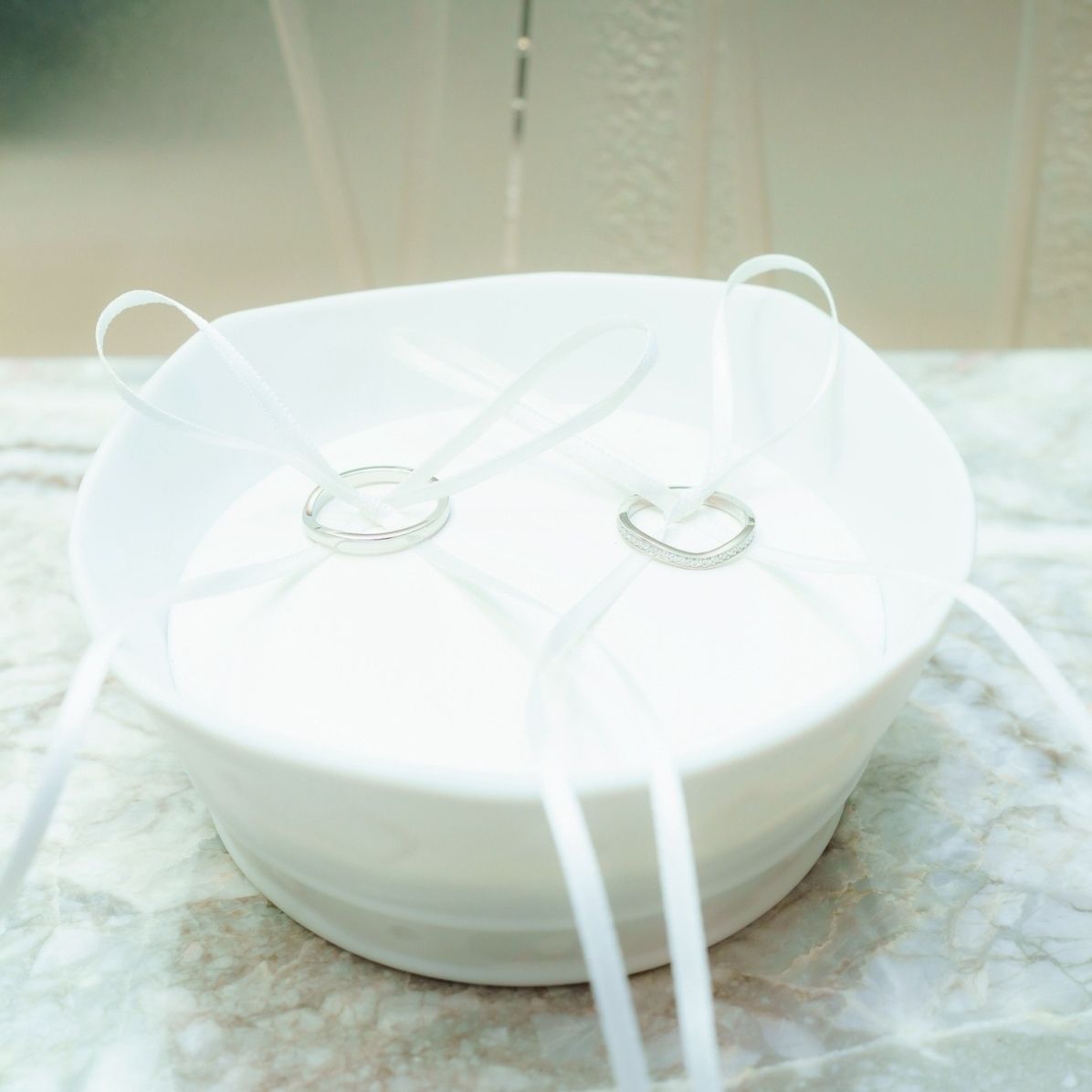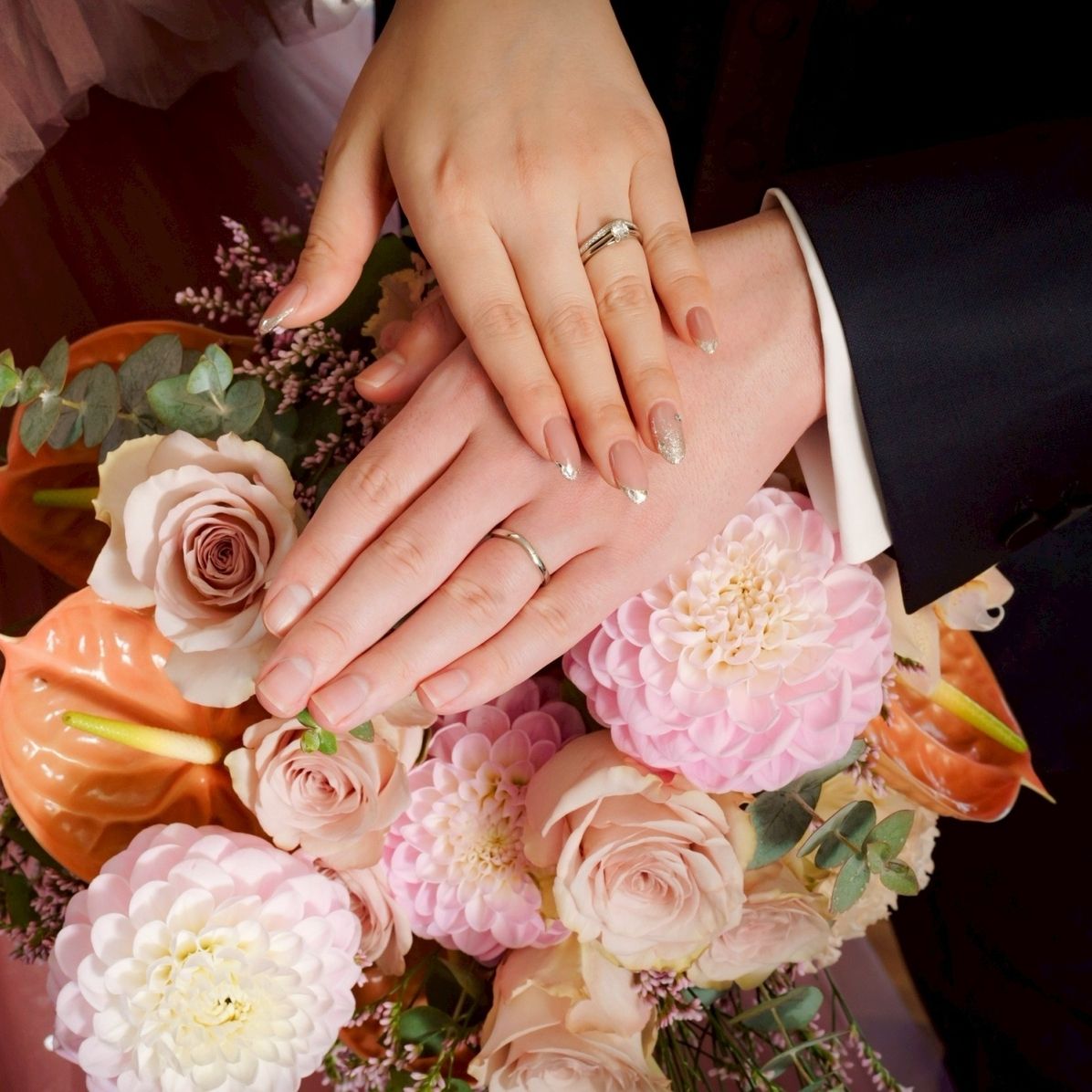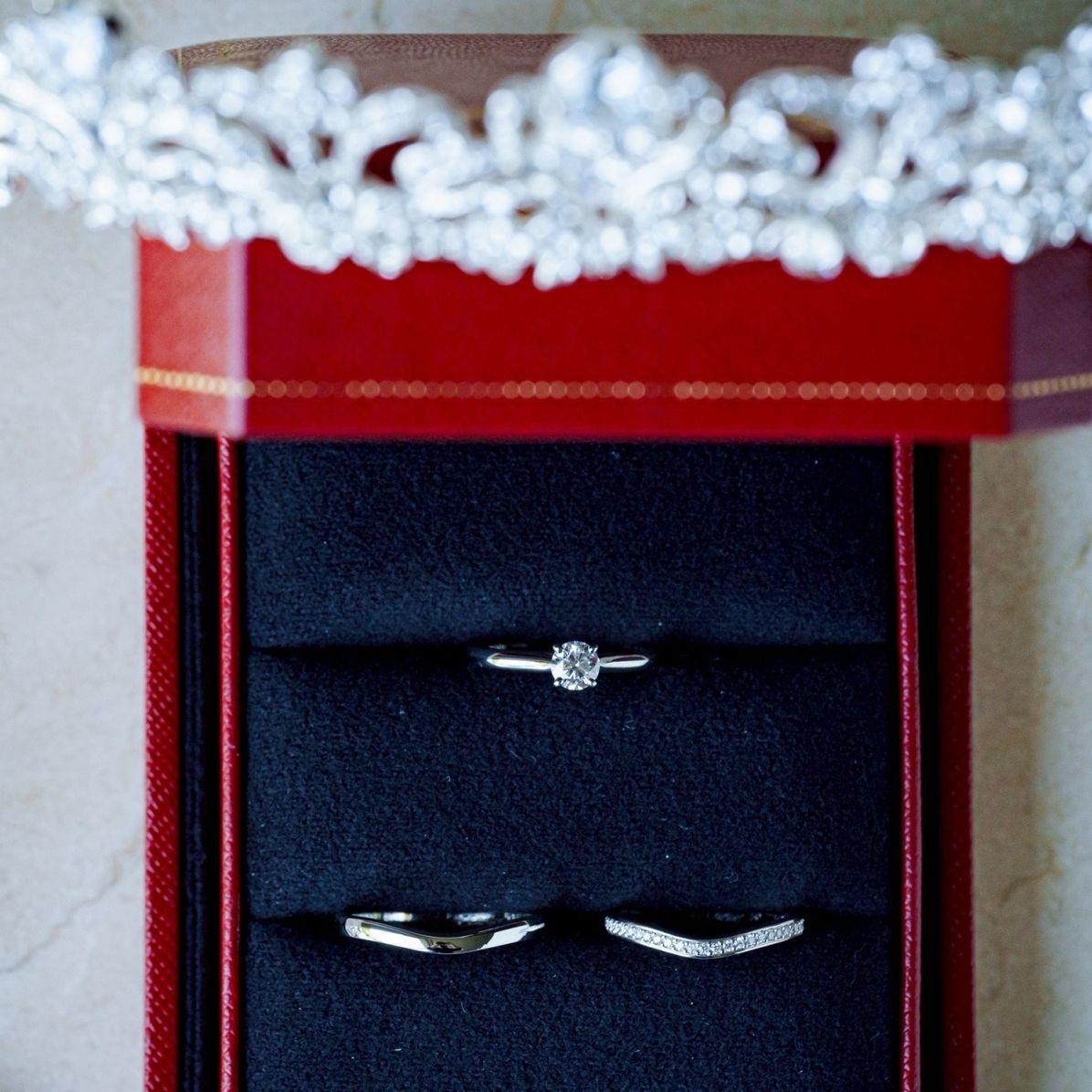 指輪は夫が一人でブランドをいくつか周って探して選んでくれました。王道シンプルな一粒ダイヤの婚約指輪は理想通りで、結婚指輪との重ね着けも綺麗に見えます。