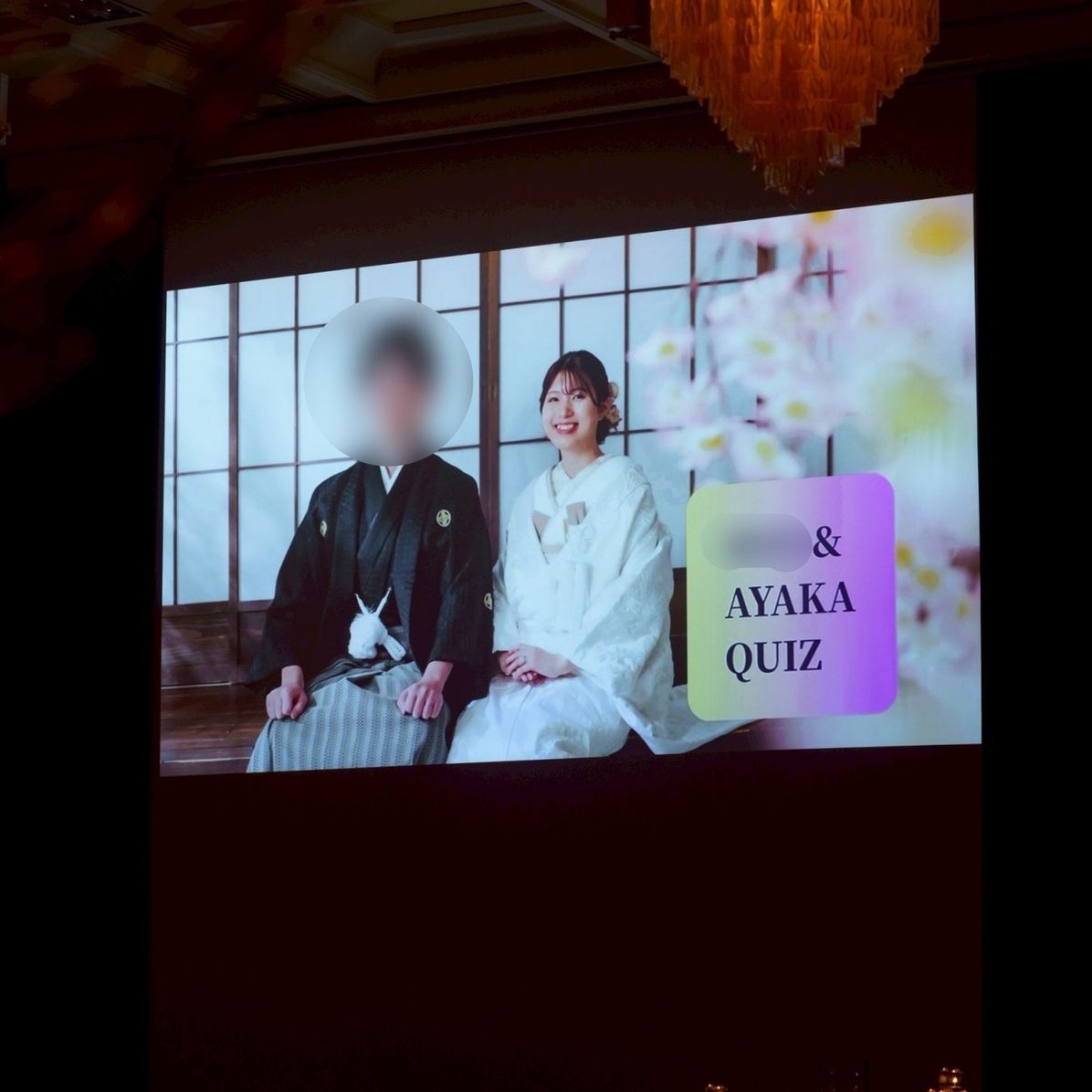 また、中座中にはプロフィールムービーではなく、新郎新婦にまつわるクイズムービーを流し、楽しんでもらえるよう工夫しました。
