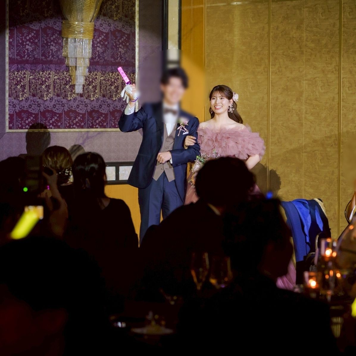 また、披露宴会場のライトにドレスのスパンコールが当たって、ドレスがキラキラして綺麗でした。