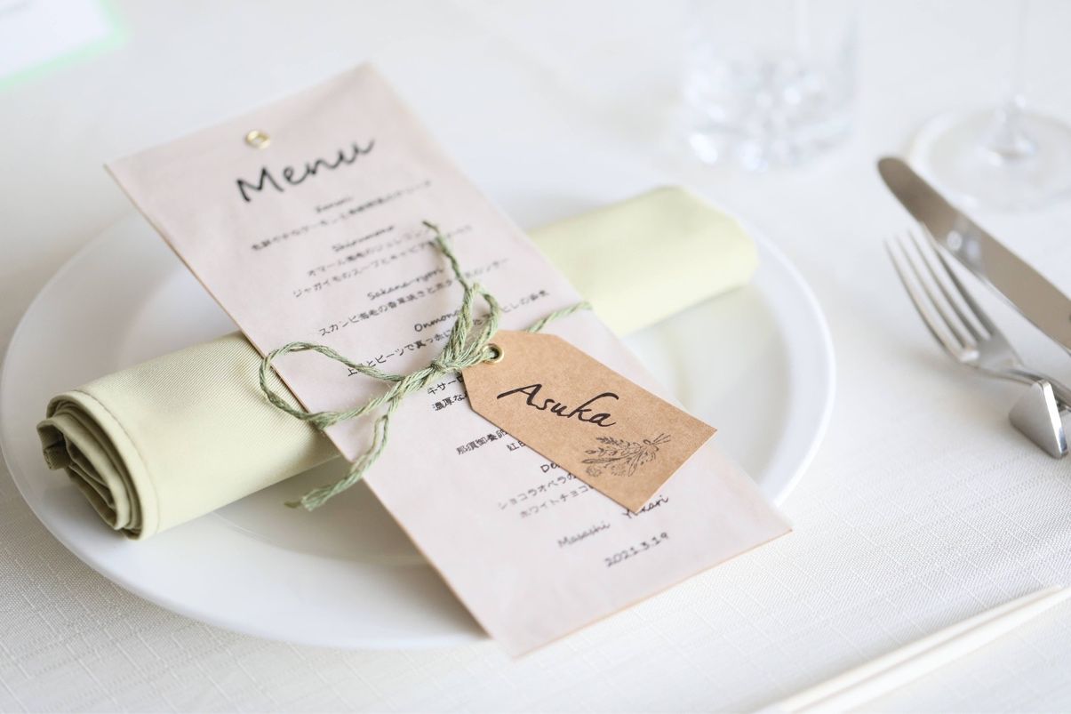 ウェルカムボード、メニュー表、席札、プロフィールムービー、親族紹介ムービーを妹に作成してもらいました。