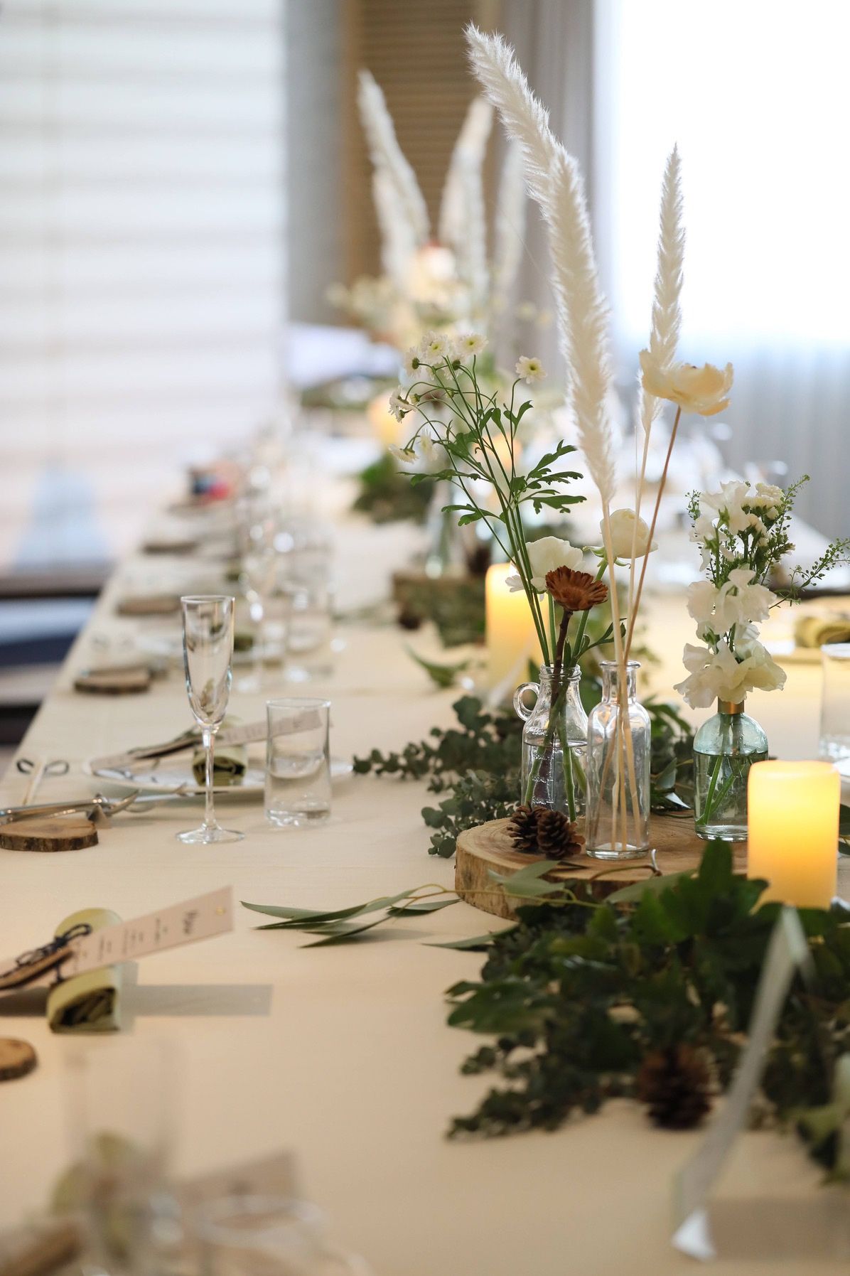 ゲストとの距離を近くし、装花や小物で自然を取り入れました。