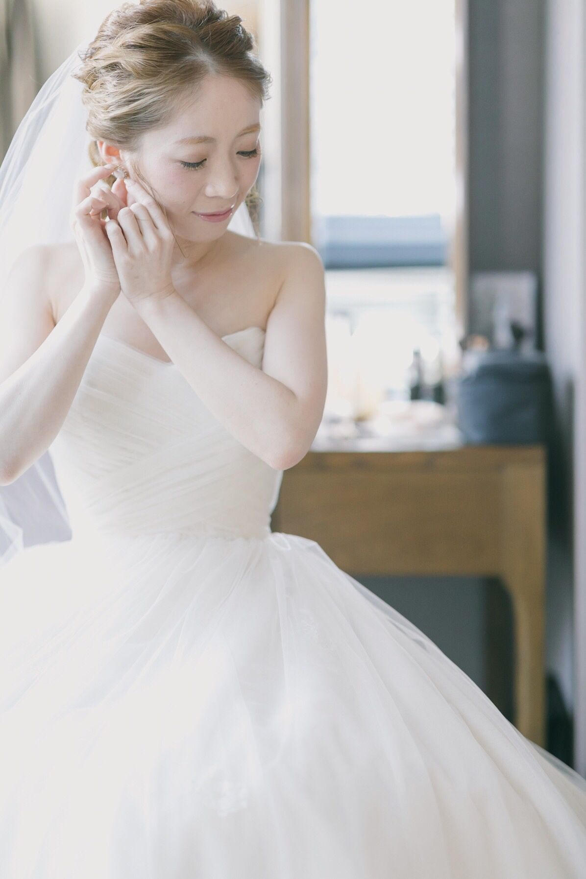 カラードレスの時はヘアがアップだったので、 イヤリングはせずに軟骨にパールとゴールドのピアスをしました!