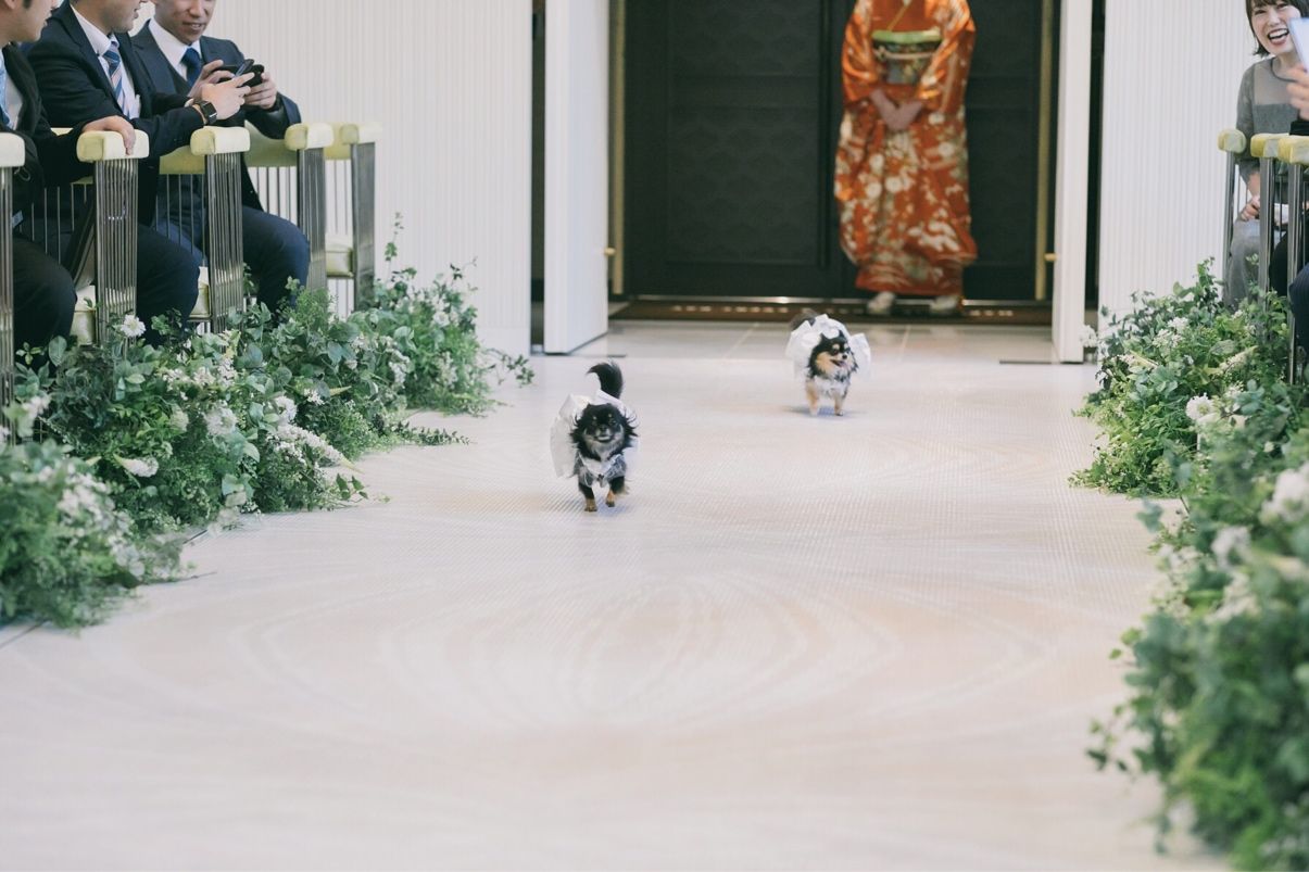 ゲストの皆様には驚いてほしくて、秘密にしていたので、ドアが空いて愛犬が走ってでてきた瞬間、会場が可愛いー!と歓声が上がってとても盛り上がりました!とても可愛いくて、本当にして良かったなと思いました!
