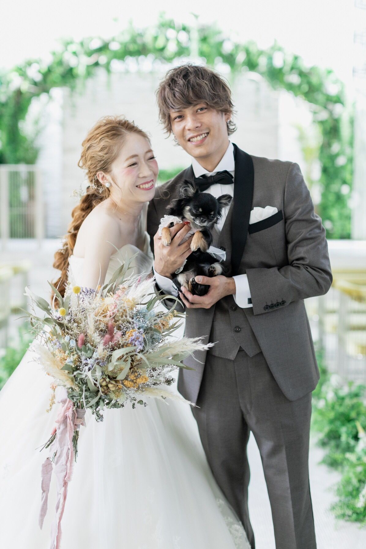 会場で頼むとブーケなどがどうしても少し高くついたので、ブーケは2つとも別のドライフラワー屋さんに頼みました!