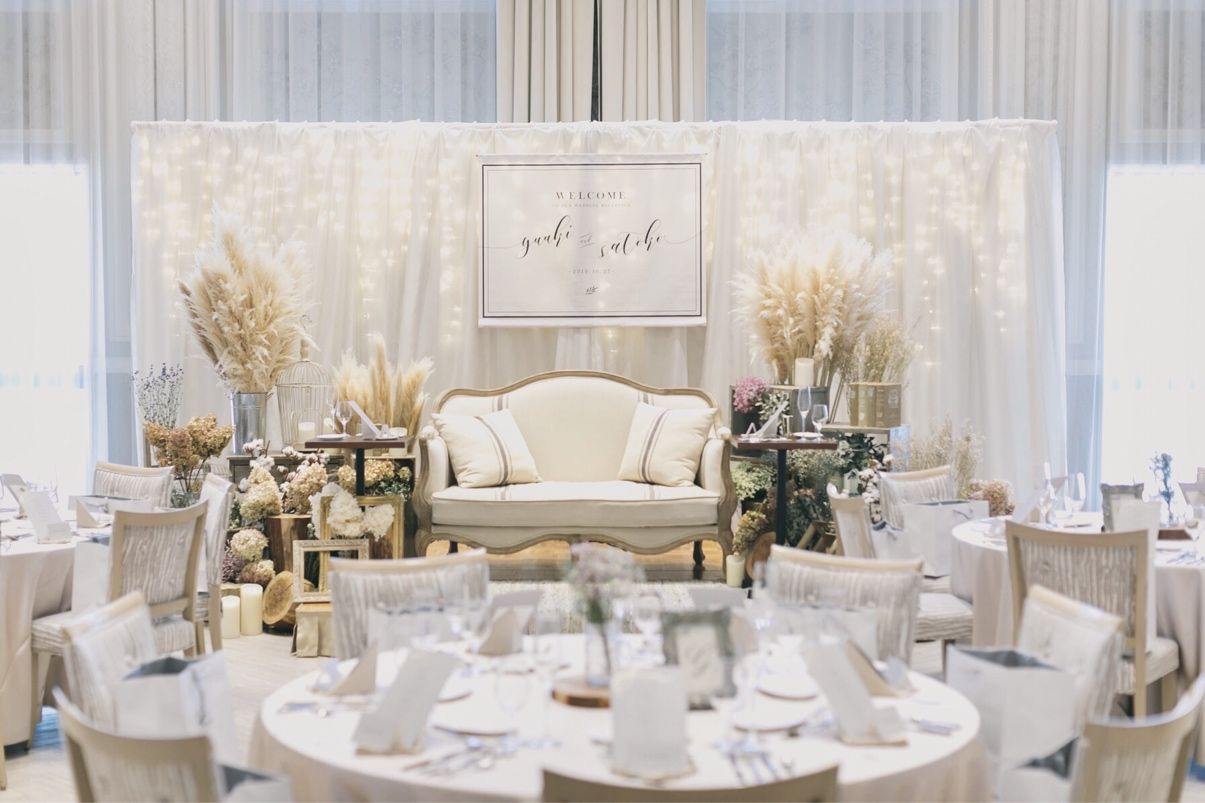 会場全体がアイボリーベースなとてもかわいい空間でした! 装飾も自分好みにしやすい空間だと思います。