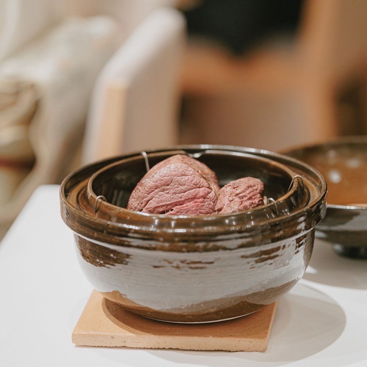 私たちは4つのコースのうち、上から2番目のコースをお願いしました。前菜の前に出されるアミューズは一杯の出汁。黒毛和牛のフィレには茶葉で香りづけがされ、中座中には実際に香りを楽しめる演出もしていただきました。味覚だけでなく視覚や嗅覚でも楽しめるコースであったことが決め手です。