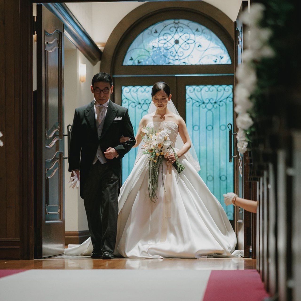 旦那に同じ質問をしてみると「私と父がチャペルに入ってきた時が感動した」と言っていました。私は緊張しすぎて旦那のほうを全く見ていなかったのですが、そう言ってくれたのが嬉しかったです。