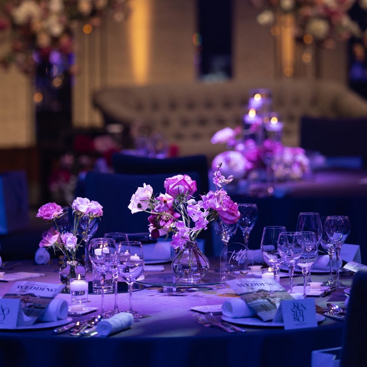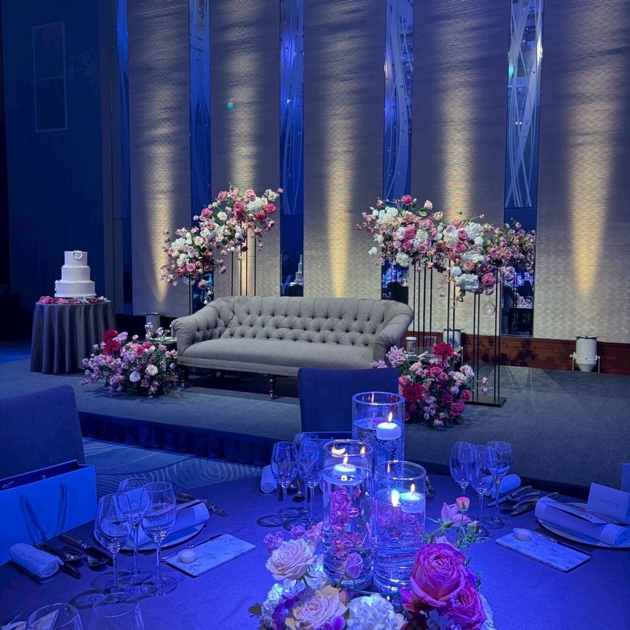 パレスの披露宴会場の中でも、ライト演出や装花のアレンジの幅が広く、アイデア次第で雰囲気や世界観を自分らしく大きく変えられるのが印象的でした。