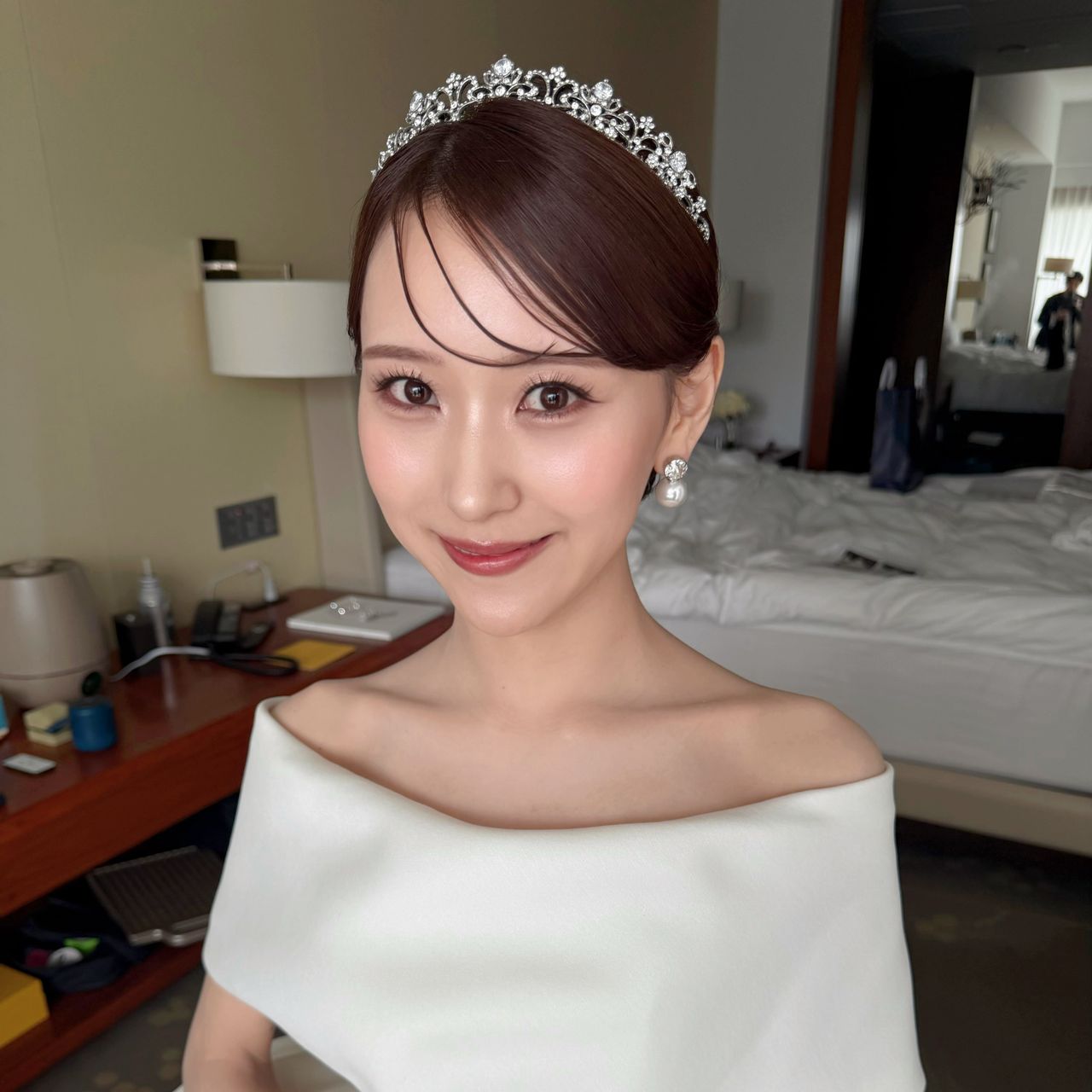顔の形も面長に見えすぎず、全体のバランスがとても良く、実際に着けてみると形の美しさが際立つティアラでした。