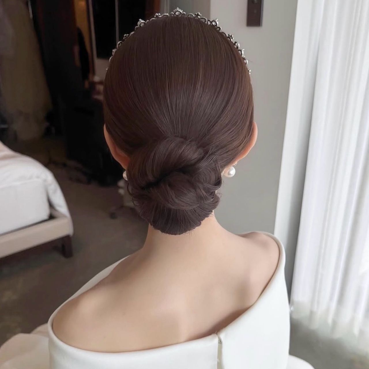 ただ、かわいらしく丸い印象になりすぎないように少しエッジの効いた、他の人と被らないシニヨンをお願いしました。
