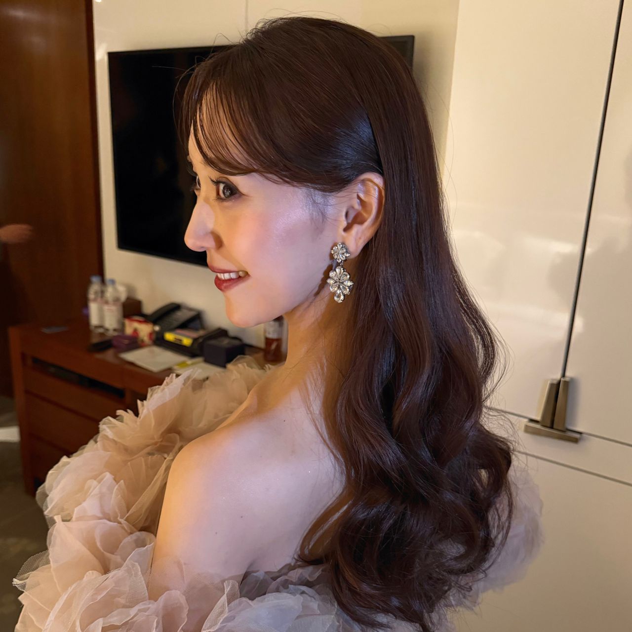 とにかく“水光肌”になるようにお願いして、上品で今っぽさのある、透明感たっぷりのメイクに仕上げていただきました。