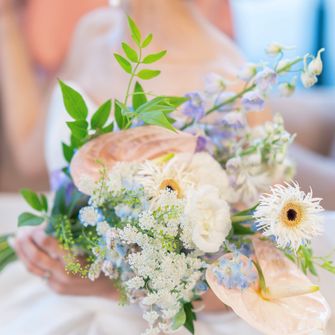 夏婚らしく、透明感や爽やかさを意識しました。また、儚く淡い雰囲気が好きなため、ドレスや装花も好みに合わせてこだわっています。式の内容に関しては『シンプル』をテーマに、ブーケトスや友人からの余興、両親への手紙は無くしました。結果として、全ゲストとゆっくりお話しすることができました。