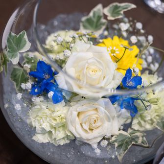 テーマは『出席してくださる全員が参加できる結婚式』です。ゲストとお話や写真を撮る時間を多く設けました。式場は、見学の1件目でチャペルのカーテンが開いた瞬間の景色に感動して即決しました。実際に式を終えてみても、担当プランナーさんをはじめ、スタッフの方々がとても親身になってくださり、やりたい演出にアイデアをいただくなど、とっても温かい式場だと感じました。連絡はチャットでも取れるため、すぐに相談できたことも安心に繋がり、ここを選んで良かったです。