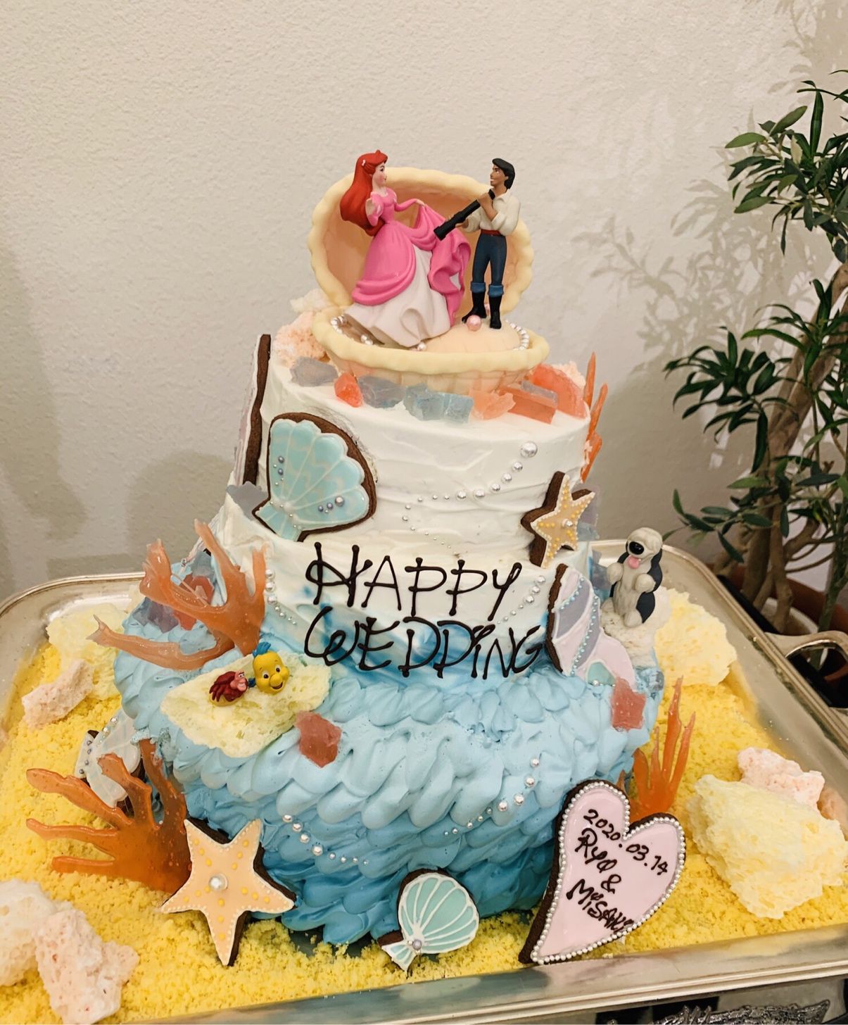 とてもこだわりました!アリエルケーキにしたいのが夢だったので、絵や写真に書いてパティシエの人と何回も打ち合わせしました!