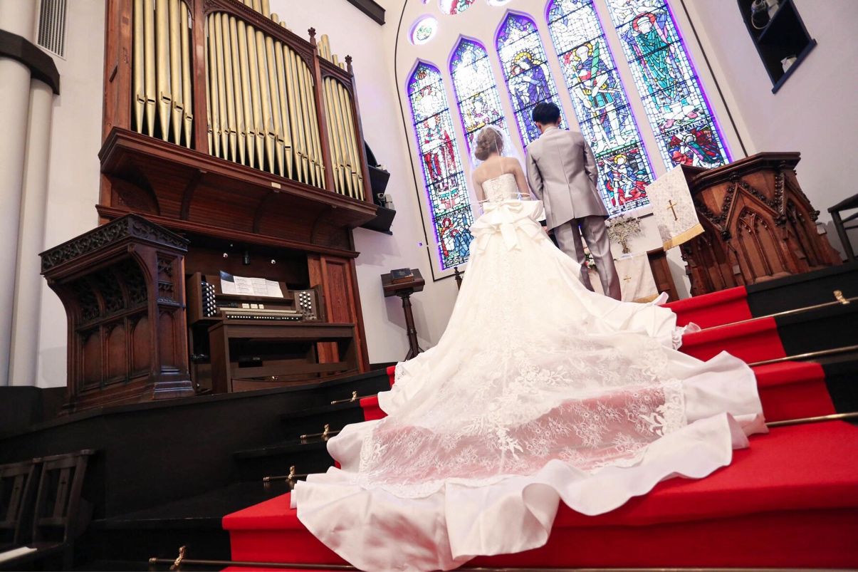 これを探していてこの式場に決めたので、当日改めてパイプオルガンの音色を聞くと圧巻されました。ステンドグラスの大きくて綺麗な色合い、光で反射した時の映り方もすごく印象に残っています。