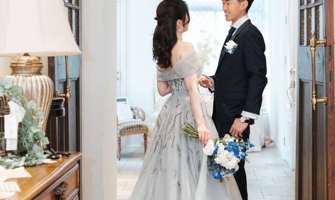2人とも青と白が好きなので、テーマカラーを青と白にし、色を統一しています。