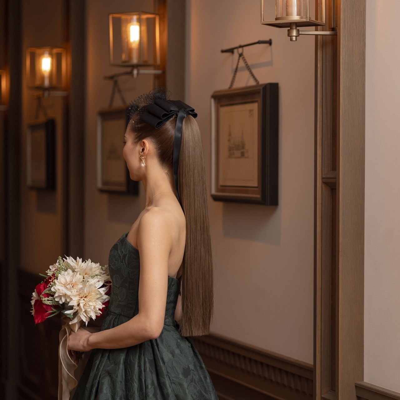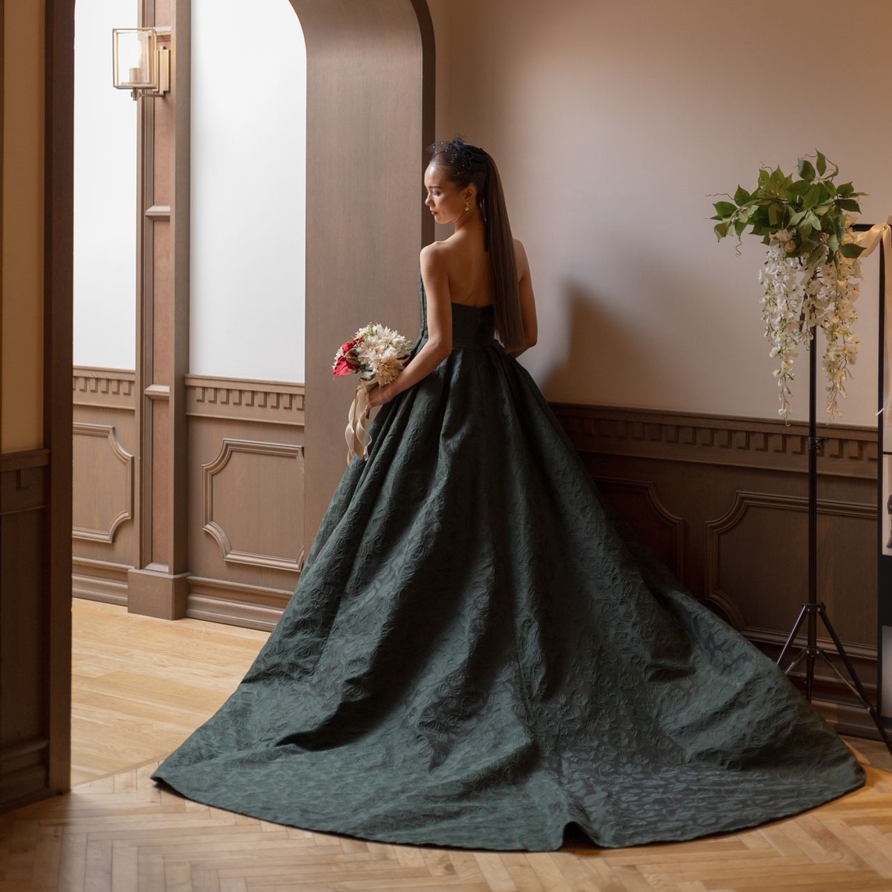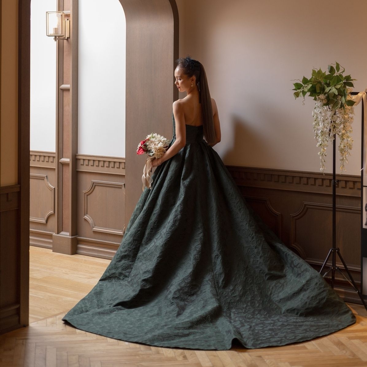 最初は全く想像していなかった色でしたが、一度着てみたらすごく高級感があって、会場の雰囲気にも合うなと思い、自分のパーソナルカラー的にもすごく合っていたので選びました。