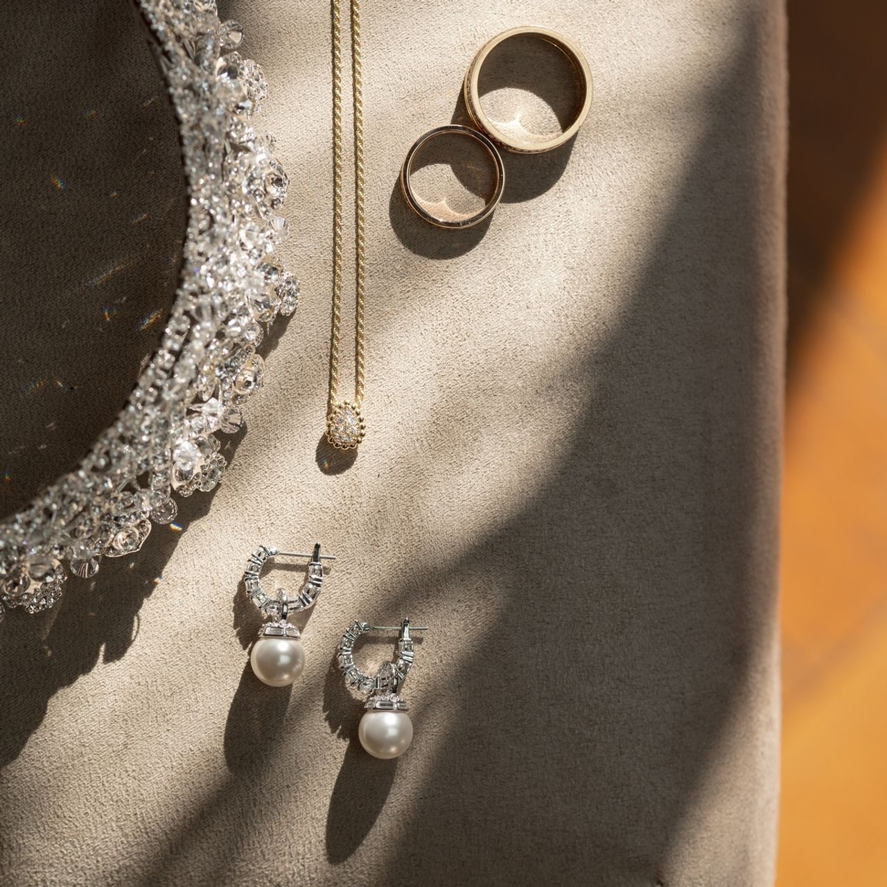 ウェディングドレスはティアラに合わせて、キラキラしたパールのシルバーピアスをSWAROVSKIで購入してつけました。